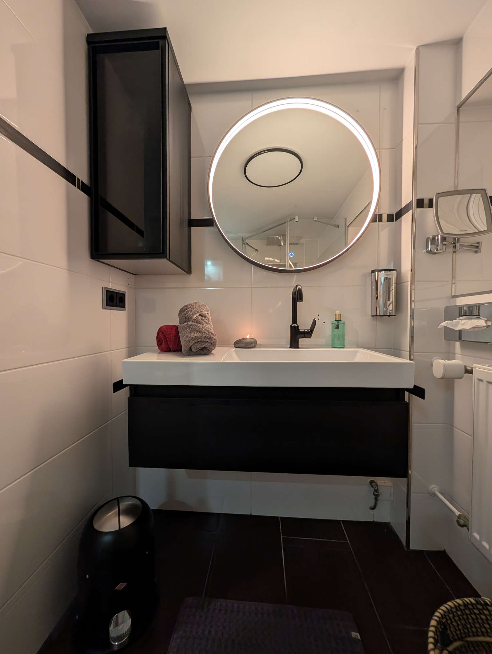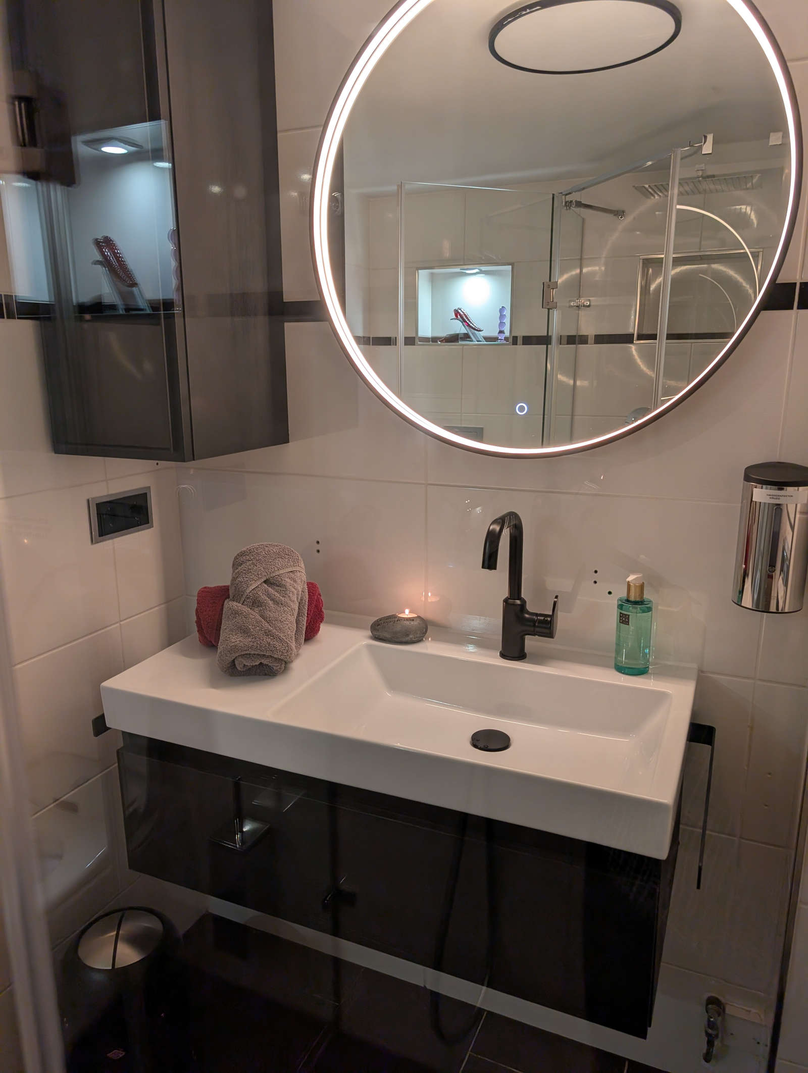 In unserer Wellness-Oase erwartet sie ein Bad mit besonderem Flair. Genießen Sie die prickelnden Wassertropfen aus unserer Regendusche oder lassen Sie sich von diversen Massagedüsen verwöhnen. Erleben Sie das Rauschen des Wasserfalls aus unserer Schwalldusche. Für Ihr Wohlbefinden halten wir edle Duschgele, Bodylotions und Peelingsalze von Rituals zur Verfügung. Kuschelige Bademäntel und Badetücher runden Ihren Wohlfühlaufenthalt in der Liebeshöhle ab.